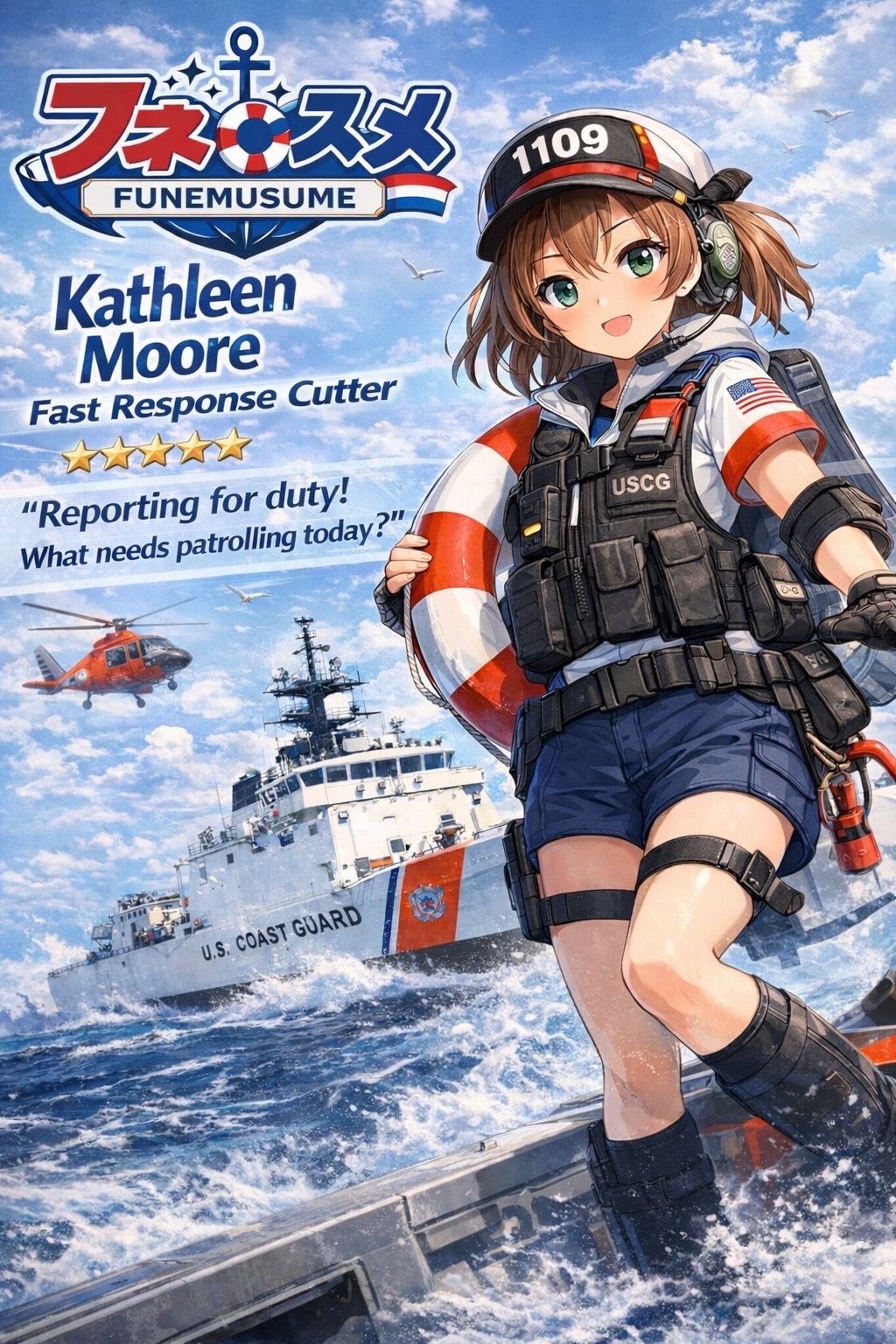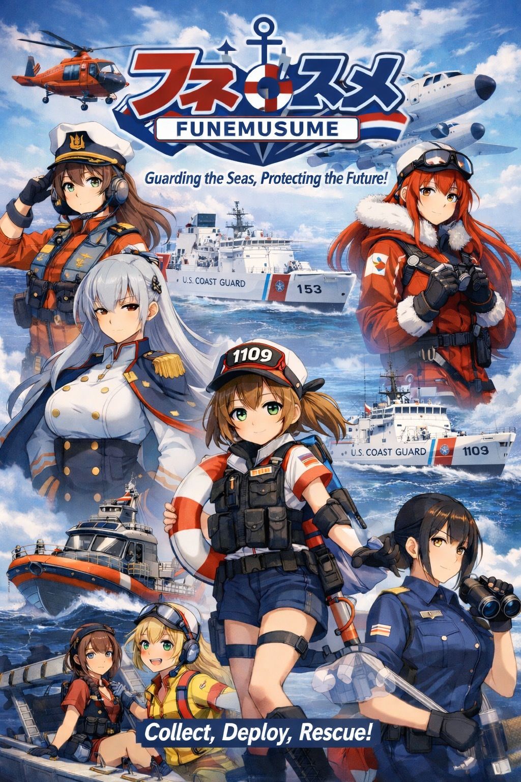 According to early concept materials, Funemusume will feature personified versions of major Coast Guard assets, including national security cutters, fast response cutters, medium endurance cutters, rescue helicopters, patrol aircraft, and response boats. Each character will reportedly retain design elements linked to the real platform’s mission set. Heavier cutters are described as “calm, senior, blue-water guardians,” while small boats are framed as “high-energy close-in response units.” An aviation-centered character draft reportedly includes dialogue referencing drug-runner patrols, medevacs, and long-range search patterns.